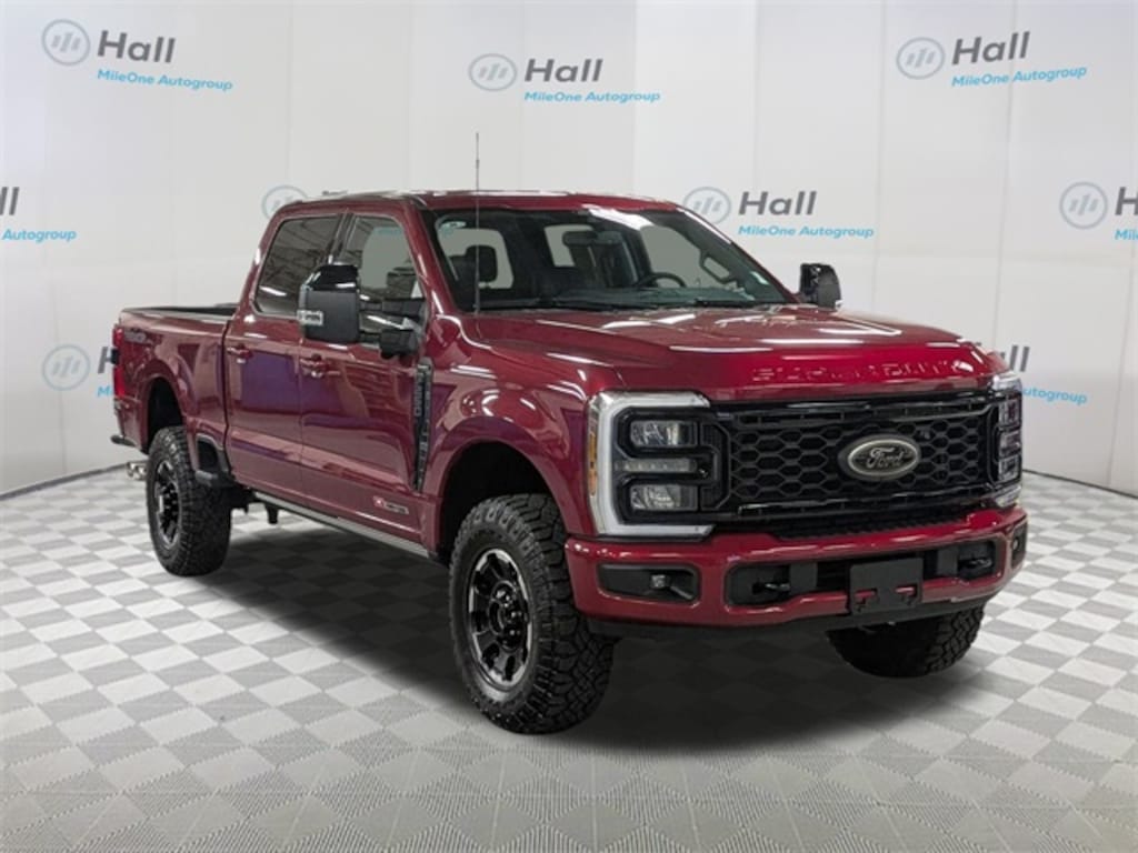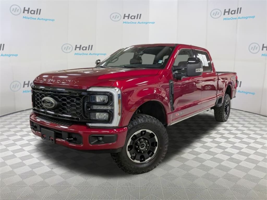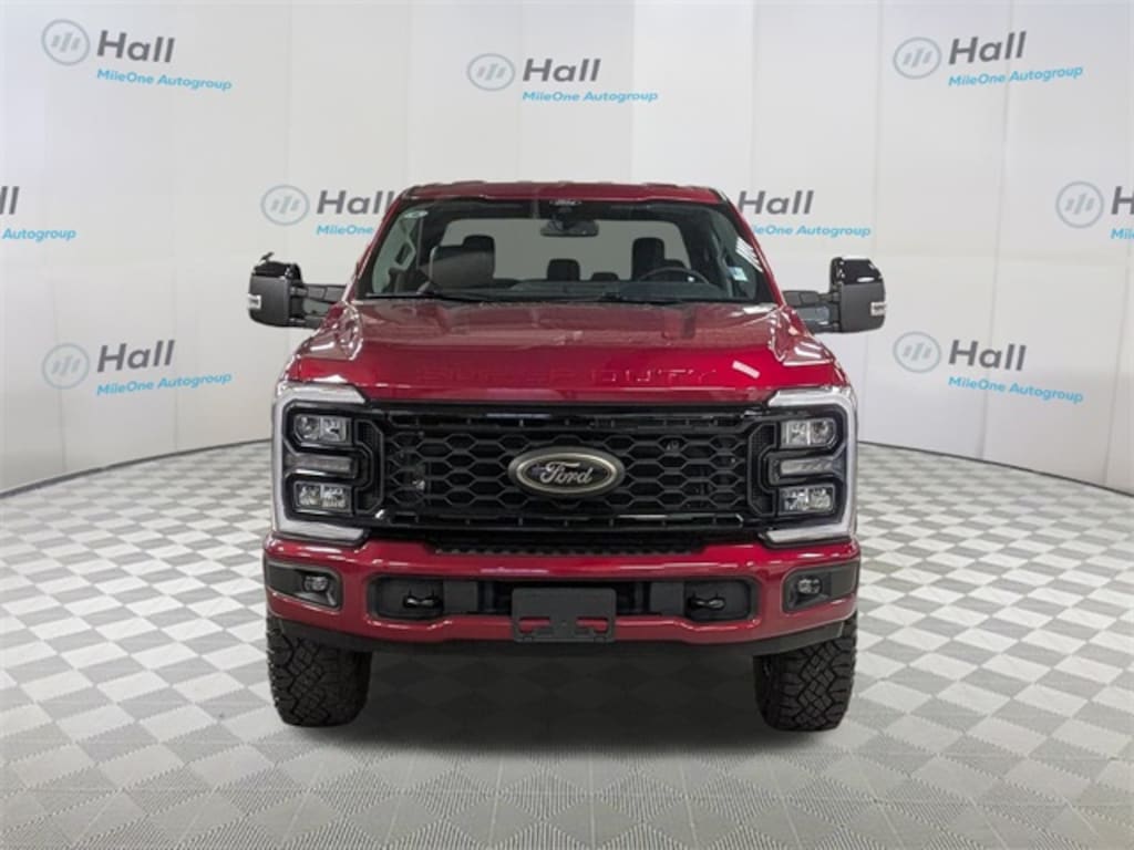 CARFAX One-Owner. Clean CARFAX. Ruby Red Metallic 2025 Ford F-250SD Lariat TREMOR 4WD 10-Speed Automatic 6.7L High Output Power Stroke V8 Diesel We are currently offering Vehicle Purchase Home Delivery by appointment. Please contact for details., 4WD, 4-Wheel Disc Brakes, 6" Ebony Black Angular Running Boards, 8 Speakers, ABS brakes, Adjustable pedals, Air Conditioning, Alloy wheels, AM/FM radio: SiriusXM with 360L, Auto High-beam Headlights, Auto-dimming Rear-View mirror, Automatic temperature control, Black Appearance Package, Black Painted Front Grille Surround, BLIS with Cross-Traffic Alert, Body Color Front and Rear Bumpers, Brake assist, Bumpers: chrome, Compass, Delay-off headlights, Driver door bin, Driver vanity mirror, Dual AGM 68 AH Battery, Dual front impact airbags, Dual front side impact airbags, Ebony Black Painted Mirror Caps, Electronic Stability Control, Emergency communication system: SYNC 4 911 Assist, Engine Block Heater, Flow-Through Console, Front ActiveX Trimmed 40/Console/40 Seats, Front anti-roll bar, Front Bucket Seats, Front Center Armrest, Front dual zone A/C, Front fog lights, Front License Plate Bracket, Front reading lights, Fully automatic headlights, Garage door transmitter, GVWR: F-250 >10K Package, Heated door mirrors, Heated front seats, Heated rear seats, Heated steering wheel, High Capacity 11.6" Axle Upgrade Package, Illuminated entry, Internet access capable: FordPass Connect 5G, Low tire pressure warning, Memory seat, Navigation System, Order Code 608A, Outside temperature display, Overhead airbag, Overhead console, Panic alarm, Passenger door bin, Passenger vanity mirror, Pedal memory, Power door mirrors, Power driver seat, Power passenger seat, Power steering, Power windows, Power-Deployable Running Boards, Privacy Glass, Radio: B&O Sound System by Bang and Olufsen, Rain sensing wipers, Rear Parking Sensors, Rear reading lights, Rear seat center armrest, Rear step bumper, Rear window defroster, Remote keyless entry, Security system, SiriusXM Radio with 360L, Speed control, Split folding rear seat, Steering wheel mounted audio controls, SYNC 4 with Enhanced Voice Recognition, Tachometer, Telescoping steering wheel, Tilt steering wheel, Traction control, Trip computer, Turn signal indicator mirrors, Upfitter Switches (6), Variably intermittent wipers, Ventilated front seats, Wheels: 18" Bright Machined and Carbonized Gray Aluminum, 4WD.