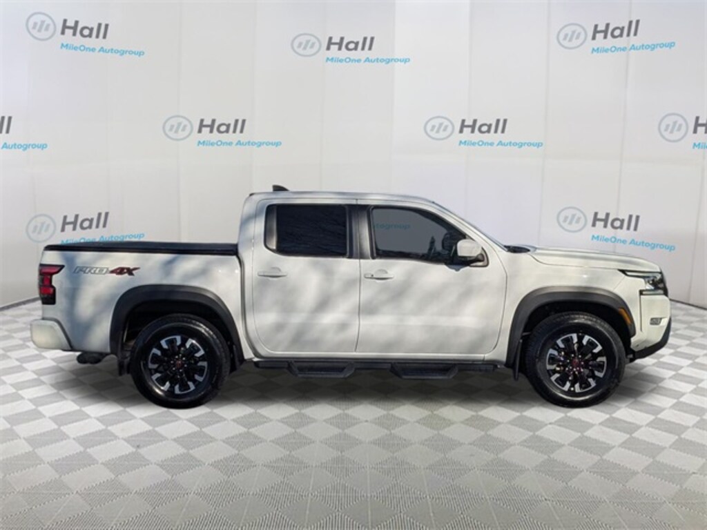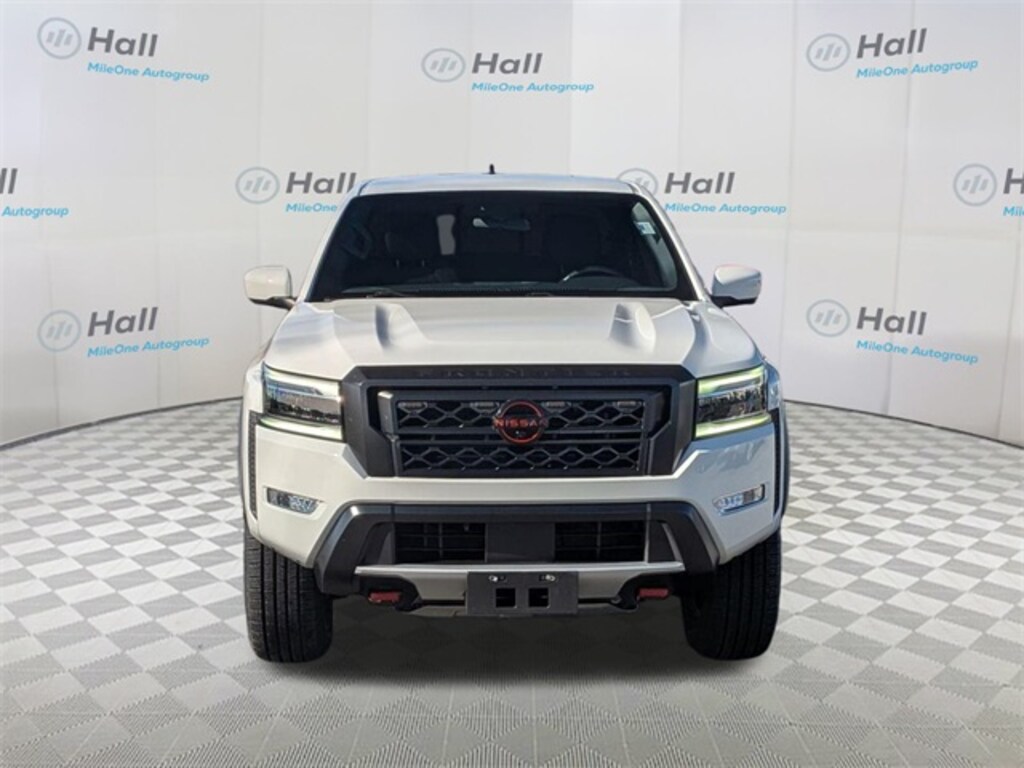 Clean CARFAX. Glacier White 2023 Nissan Frontier PRO-4X 4WD 9-Speed Automatic 3.8L DI DOHC 24V V6 We are currently offering Vehicle Purchase Home Delivery by appointment. Please contact for details., 4WD, 17" Alloy Wheels, 3.692 Axle Ratio, 4-Wheel Disc Brakes, 6 Speakers, ABS brakes, Air Conditioning, Alloy wheels, AM/FM radio: SiriusXM, Anti-whiplash front head restraints, Automatic temperature control, Brake assist, Bumpers: body-color, Delay-off headlights, Driver door bin, Driver vanity mirror, Dual front impact airbags, Dual front side impact airbags, Electronic Stability Control, Electronic Tailgate Lock, Emergency communication system: NissanConnect Services, Front anti-roll bar, Front Bucket Seats, Front Center Armrest, Front dual zone A/C, Front fog lights, Front reading lights, Front wheel independent suspension, Fully automatic headlights, Heated Steering Wheel, Illuminated entry, Illuminated Kick Plates, Intelligent Around View Monitor (I-AVM), Knee airbag, Leather Shift Knob, Low tire pressure warning, Navigation system: Nissan Navigation with Voice Recognition, Occupant sensing airbag, Off-Road Protection Package, Off-Road Style Step Rails, Overhead airbag, Overhead console, Panic alarm, Passenger door bin, Passenger vanity mirror, Power door mirrors, Power driver seat, Power steering, Power windows, PRO Convenience Package, PRO Embroidered Premium Cloth Seat Trim, PRO-4X Carpeted Floor Mats, PRO-4X Mud Flaps, Radio data system, Radio: SXM/AM/FM/AUX/USB Audio System w/6 Speakers, Rear anti-roll bar, Rear seat center armrest, Rear step bumper, Remote keyless entry, Security system, Speed control, Speed-sensing steering, Split folding rear seat, Steering wheel mounted audio controls, Tachometer, Tilt steering wheel, Tow Package: Hitch, Tow Harness, Traction control, Trip computer, Variably intermittent wipers, Voltmeter, Wireless Charging For Personal Devices, 4WD.